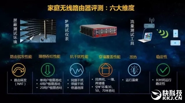 测试的8个品牌包括:TP-Link、华为、小米、水星、360、迅捷、荣耀、腾达。测试项共计六大方面:路由转发性能、理想吞吐性能、抗干扰性能、穿墙覆盖性能、发热、稳定性。