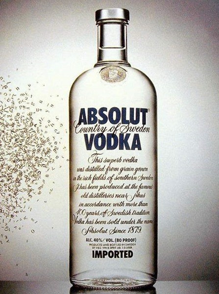 绝对伏特加产地阿赫斯,有400年之久的酿酒历史传统,用水,冬麦简单的原材料历经连续蒸馏酿造出世界级美味,不只是一种口味,集团陆续推出辣椒、柠檬、黑加仑、香草等口味,其中不乏重口味。这样的美酒适宜搭配任何美食,也可单独饮用,还可制预调鸡尾酒,无论怎样都是上品。酒是好酒,连瓶子都充满了创意与文化,伏特加酒业文化公司直接将字体印刷在透明瓶子上,给你一种透彻的质感。