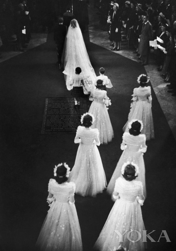 英女王第一次当伴娘还是在5岁的时候,那时她还是伊丽莎白公主,穿着天鹅绒长袍萌萌哒。