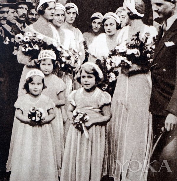 1934年,在他们叔叔肯特公爵的婚礼上,伊丽莎白公主和妹妹玛格丽特公主担任伴娘。