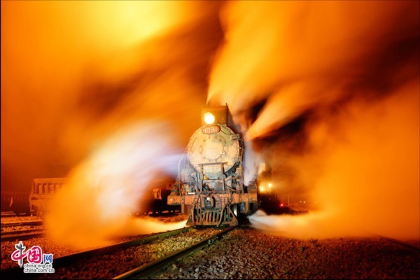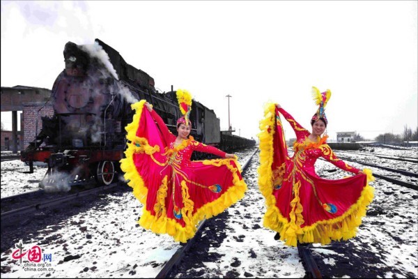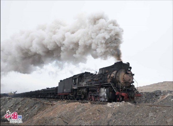 2017年1月1日, 新年伊始,三道岭煤矿的蒸汽机吸引了来自各地的蒸汽火车迷和摄影爱好者。矿山、雪峰、夕阳下的矿野,伴着阵阵粗犷悠长的汽笛声,气势磅礴的蒸汽火车穿越白雪覆盖的新疆最大的露天煤矿----哈密地区三道岭煤矿蜿蜒而来。
