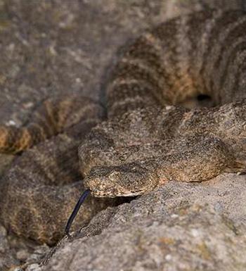 对于虎斑响尾蛇的毒性强度存在很多不同的说法,虎斑响尾蛇发现于美国西南部和墨西哥西北部地区。一份资料记载它的半数致死剂量为0.06毫克,而其它记载有的更高。但是我们可以确定的是虎斑响尾蛇是所有响尾蛇中毒性最高的。被这种蛇咬伤应当被视为极度危险情况。如果遇见过一只虎斑响尾蛇的话,那么它的斑纹就是一种警告。