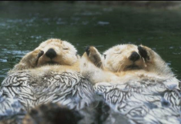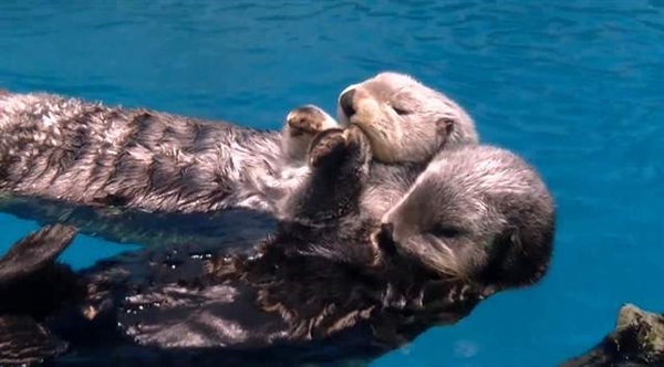 但如果到了像水族馆这样没有海草的地方,聪明的海獭就会求助于同伴跟,同伴一起手牵手避免睡觉时漂到其他地方去。