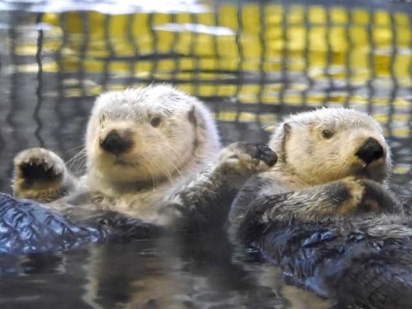 表情意外丰富、一举一动都超级可爱的海獭,时常出现一些像人的动作也让它们总是水族馆里的人气王。