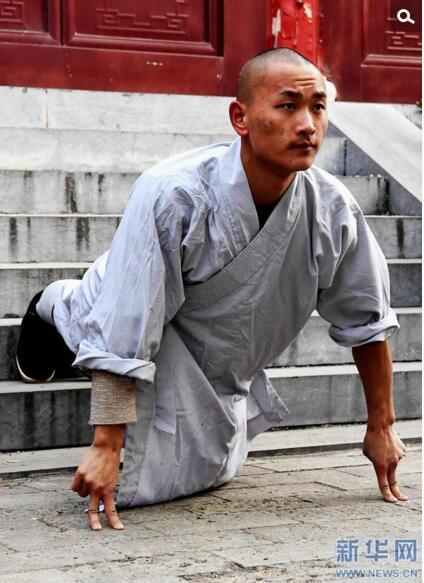 1月20日,少林寺延庄法师在少林寺西方圣人殿内习练"金刚捣碓"。据说地上的坑都是众僧苦心学艺,两脚踏踩而成。