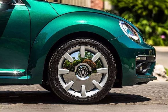 除了专属"竹璃绿"车漆之外,甲壳虫翡冷翠经典版还配置了专属的采用复古样式设计的18英寸"Disc"铝合金轮毂,轮毂上甚至可以映衬出道路两旁的景色。