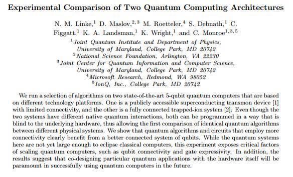 两种量子计算机分别来自门罗团队和IBM公司,都有5个量子位,但门罗团队用电磁场捕获的5个镱(Yb)离子创建,IBM公司是用超导性金属形成的5个环创建。由于IBM量子计算机开放给用户在网上对其编程,门罗团队因此能够设计这次开创性实验。