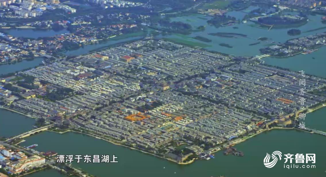 聊城,鲁西平原的明珠,国家历史文化名城。空中俯瞰,正方形的古城如同一个硕大的棋盘漂浮于东昌湖上。这座最早形成于北宋时期的古城,是聊城独有的城市奇观。总面积约100万平方米。