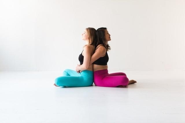 1.两人背靠背盘腿坐好坐稳,肩膀放松,双手手掌轻轻放在膝盖上方。