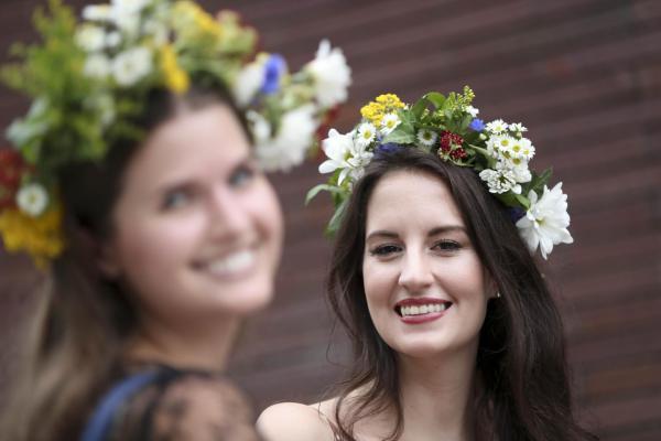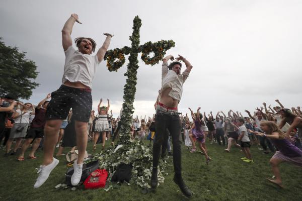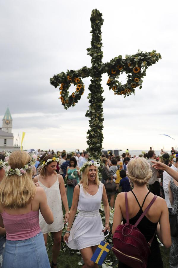 纽约23日举行瑞典仲夏节庆祝活动,迎接夏至的来临。男女老少头戴花环,穿着绚丽的服装,演奏欢快的音乐,跳起传统的舞蹈。纽约的瑞典仲夏节由来自瑞典的移民从北欧带至美国。