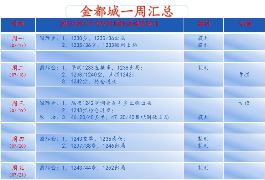 荐 金都城:(第二十二周)国际金原油十五单损三
