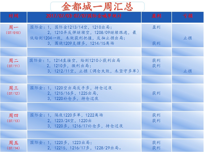荐 金都城:(第十八周)一周操作汇总