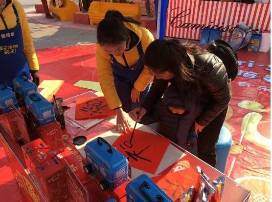 活动现场,小朋友和果倍爽的人偶合影留念,做游戏,现场购买产品即可获得新年春联或亲自挥毫提金“福”,更有现金红包送不停……,结合春节气氛、创意新颖,让放假的孩子和家长不仅买到了心仪的儿童果汁饮料,也玩的不亦乐乎。