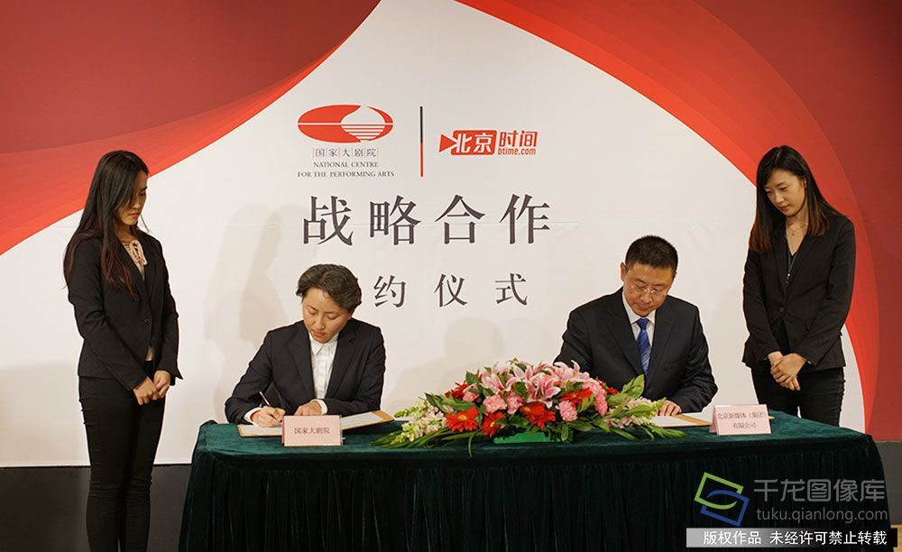 北京新媒体集团总经理金鹏、北京新媒体集团副总经理赵志成、国家大剧院副院长王争鸣、国家大剧院副院长赵铁春、国家大剧院副院长朱敬、北京新闻媒体有线责任公司副总编辑齐婷共同出席签约仪式。