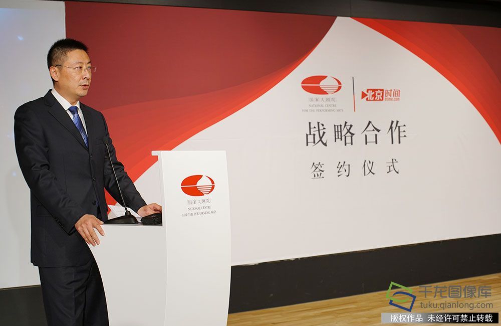 12月22日,北京新媒体集团和国家大剧院签署战略合作协议。图为新媒体集团总经理金鹏致辞。千龙网记者 王硕摄
