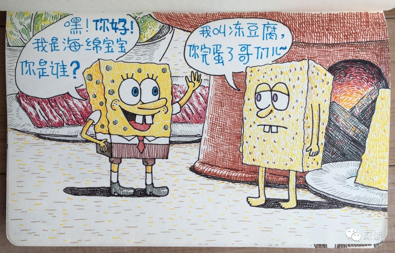 海绵宝宝在中国遇到神似它的冻豆腐……