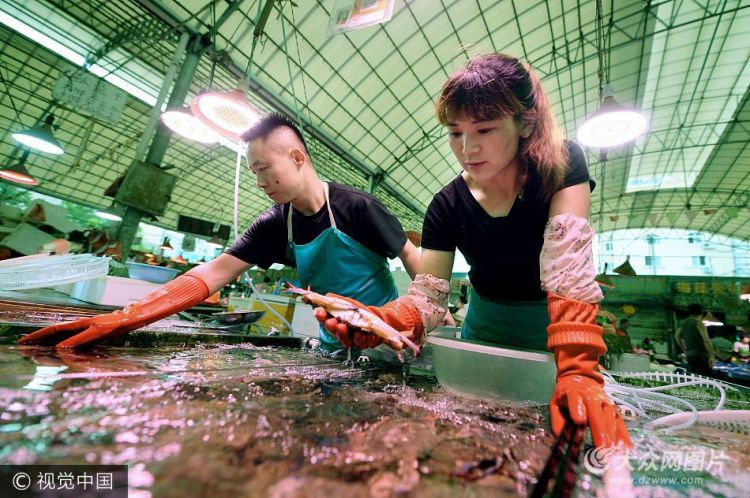 2017年8月9日,山东青岛,距本年休渔期结束还有20多天左右,山东省青岛市的大小市场被外来海蟹"占领",每市斤价格为25元-100元左右,成为近期海鲜市场上的主角,吸引了众多市民购买尝鲜。