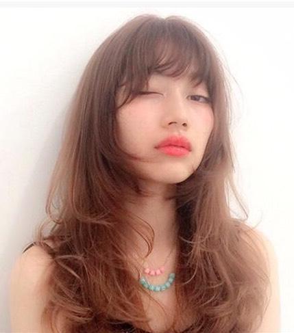 侧分长刘海卷发,窄额头的女生适合长刘海,将其侧分露出部分额头,就像这款气质侧分的卷发就很适合,利用蓬蓬的大卷遮住肉肉的圆脸,也更显的上下比例协调,深棕色的染发尽显成熟忧郁之美。空气感齐刘海发型,很时尚的一款明星韩式发型,空气感的齐刘海很好的平衡了窄刘海的不完美,显得整个人看起来更加柔美,棕栗色的靓丽卷发,蓬蓬的很时尚。