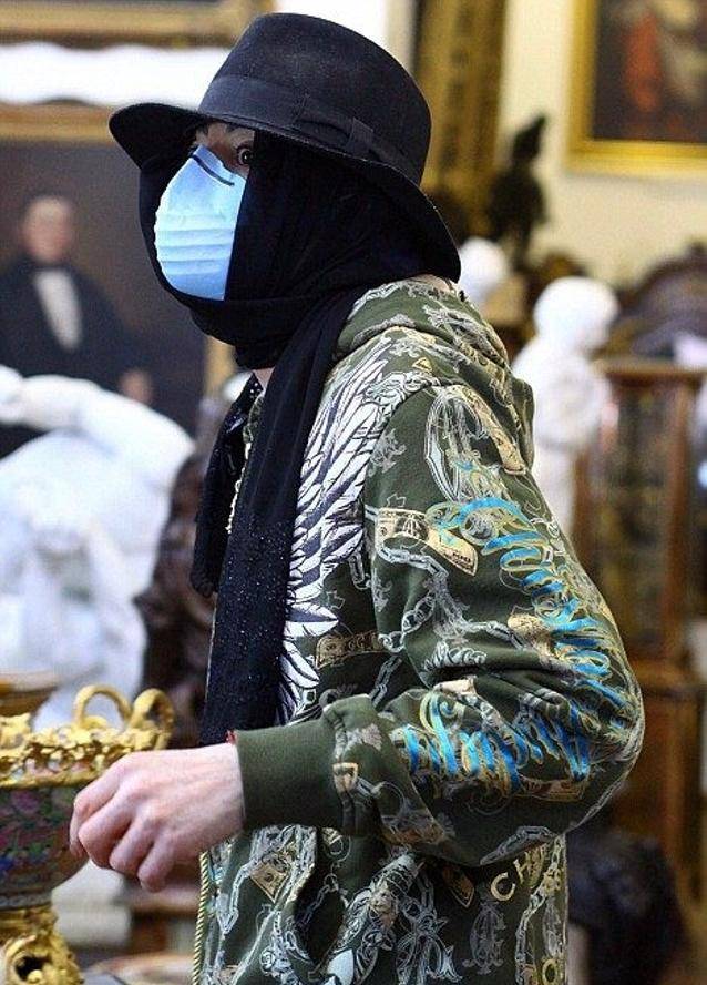 2009年1月,迈克尔·杰克逊带着口罩正在购物。在迈克尔去世前的几个月里,他经常带着口罩。据报道,迈克尔·杰克逊患有呼吸问题,他的尸体解剖显示他患有长期肺炎