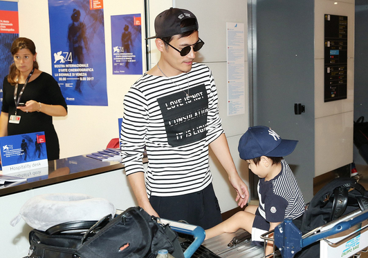 耿乐与两岁儿子当地时间9月5日中午,演员耿乐抵达威尼斯机场,在他身边的男孩非常抢镜。安置完行李后,儿子玩耍滑板车,而父亲戴着鸭舌帽和墨镜在一起温馨陪护,父子俩一边嬉闹一边前行,默契十足。