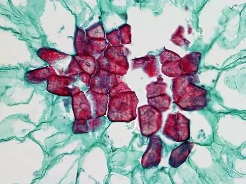 正如名字所讲,石细胞非常的硬。这是因为它们拥有非常厚、强烈木质化的细胞壁。