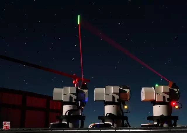 丽江量子通信地面站望远镜发射红色信标光,"等待""墨子号"过境(2016年12月22日摄)。