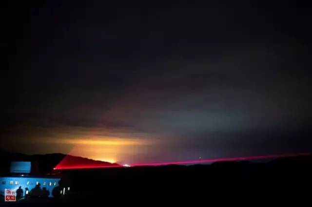 兴隆量子通信地面站望远镜发射出红色信标光(2016年11月25日摄)。