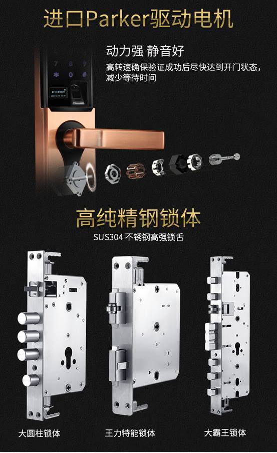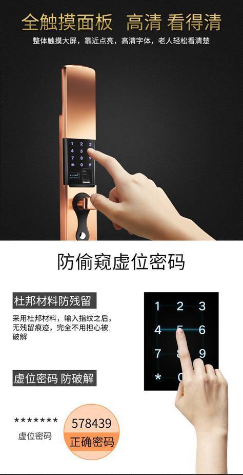 1、昨天中午收到了宝贝,迫不急待打开包装,检查了一下所有配件,看一下说明书,把锁的前后面板连接线连接上,放在泡沫盒上,装上电池,测试了一下指纹,密码,刷卡,公交卡,银行卡都能用,我3岁的小外孙女的指纹也能识别,连上网管,下载网管软件,测试了远程手机密码开锁,开锁监控,一切正常,下午自己把门上的老锁拆掉,把须穿电线的孔用电钻扩一下,把锁体、锁把手调整成符合自己门的型式,再把锁体、锁芯、锁面板固定好,按压锁把开合自如,再试钥匙开锁返锁,装上电池试指纹、密码、刷卡、连上网管,一切正常,合门有点小问题,新锁舌与原来的锁舌片不太照,量好画好线,用切割机和电钻改了一下,用自攻丝固定好锁舌片,关上门一切ok了。自己换的锁省钱,用了两个多小时,如果老锁体的孔和新锁体的孔照的化,不换锁体只换锁芯锁面板那就省事多了。为了买这把锁,在网上看了很多品牌的智能锁,关注有一月的时间了,这款锁功能真的太强大了,不次于两三千的智能锁,做工烤究,用料实在,锁体锁面板很有份量,货真价值,喜欢。耐用程度有待使用一段时间再说。客服很好,售后很好,德邦物流也很快,满意,好评。