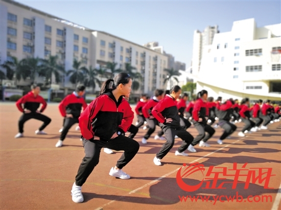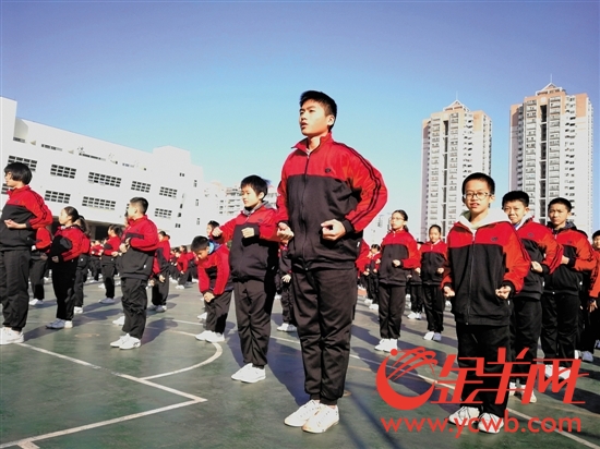 而在平时的体育课中,每个学生都要学习板凳功夫操。"我们每个班每个星期有三节体育课,初一时,会安排其中两节体育课做体能锻炼,一节体育课学习板凳功夫操。"该校教务处副主任陈颖姬告诉记者。
