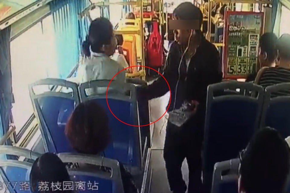 深圳东部公交二分公司377线路行驶至爱华市场站时,上来一位30多岁左右的黑衣男子,带着耳机,手里拿着一瓶可乐。随后,这位黑衣男子走到后排的一位中年女乘客面前,欲伸手袭胸,被警惕的女乘客呵斥。