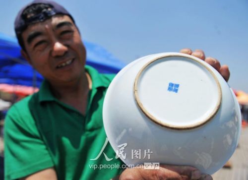 2017年5月28日,在山东青岛积米崖渔港码头,渔民王悦元首次拿出珍藏了十几年前的2件"宝贝"展示。2件"宝贝"分别是一只直径20多厘米的青花大磁盘(碗),磁盘(碗)保存完好,底部有篆书"景德镇制"款识;另一件是2块疑似鹿角化石,一只完好,一只已破损。据王悦元介绍,这2件"宝贝"是他两次在十几和二十多年前在青岛潮连岛外海进行渔业捕捞作业时随渔网一起捞上来的,一直珍藏在家。