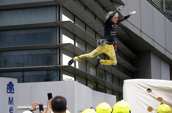 这位56岁的“超胆侠”在没有任何安全措施保护的前提下徒手攀爬这幢47层高的大厦,仅仅使用攀岩镁粉和薄薄的手套来帮助他防滑,这一让人惊心动魄的举动引来了不少人围观,他或许会因“扰乱城市秩序”被起诉。