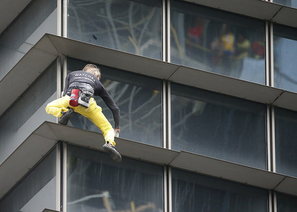 亚伦是世界上攀楼数量最多的人,他曾经征服过828米高的迪拜哈利法塔和法国的埃菲尔铁塔,并于1月29日清晨成功攀爬GT国际大厦。