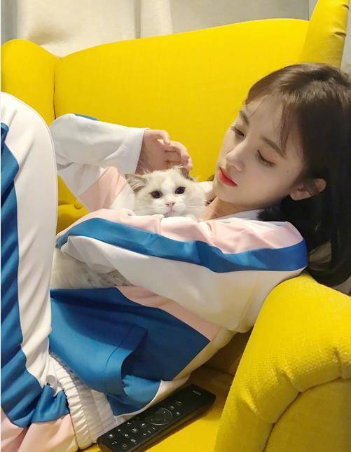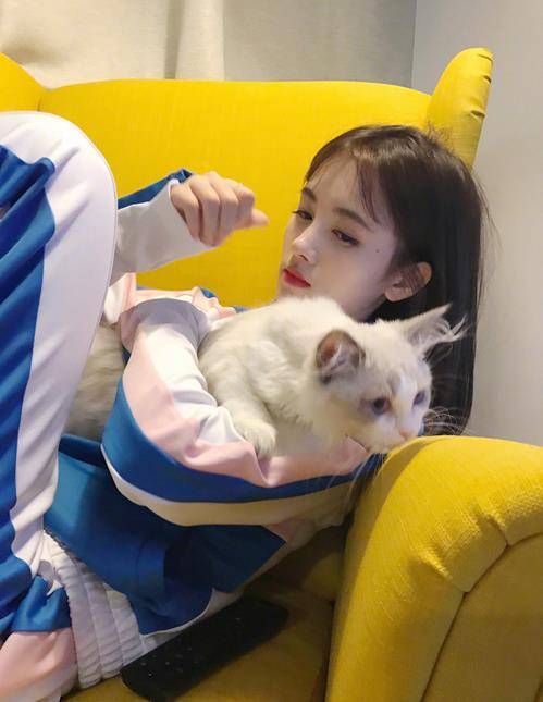 鞠婧祎在微博晒出几张自己与猫咪的合影,还配上了一个"宅在家的鞠婧祎与猫咪为伴,身穿运动装怀抱爱宠,神情慵懒惬意,猫咪也配合地看向镜头。鞠婧祎眼神迷离,似要昏睡,看到鞠婧祎如此迷人的侧脸,网友纷纷评论:"...