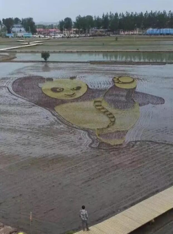 "功夫熊猫"惊现东港水田 巨幅"稻田画"为丹东首创_北京时间