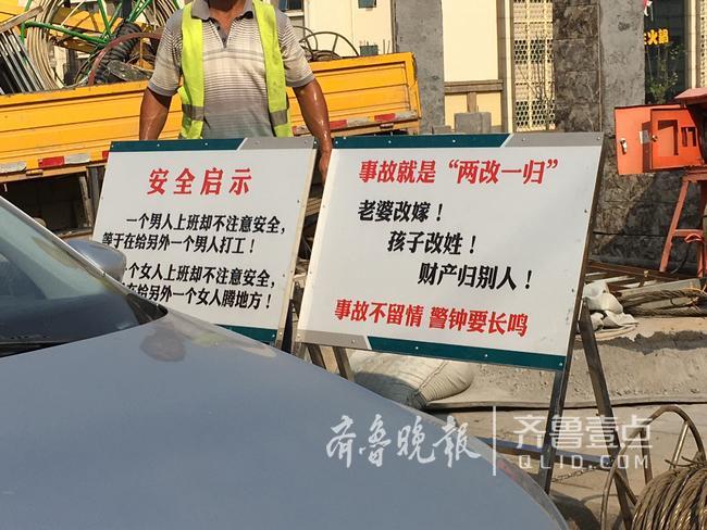 15日上午,济南环山南路开始电缆沟入地施工,电缆入地施工对安全要求非常高。沿线有200多位电力工人在施工。现场的施工警示牌也与其他工地不同,更直白戳心。