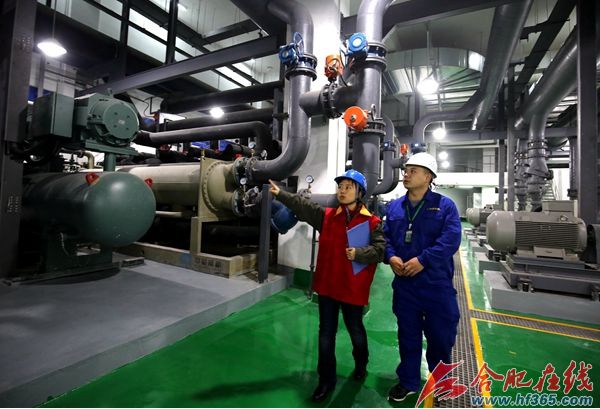 不断落地的大型电能替代项目积极转移高峰负荷,有效节约能源,图为合肥供电公司工作人员在滨湖金融港验收大型能源项目。