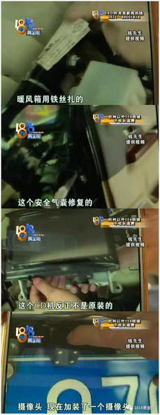 嘉兴嘉善的钱先生反映,他所在的公司有一辆丰田埃尔法,去年8月份出了事故,当时在嘉兴的4S店维修。一个月前,车子在汽修厂做保养,师傅发现空调里面都是用铁丝捆扎的,这才发现去年4S店在维修过程中存在不少猫腻。