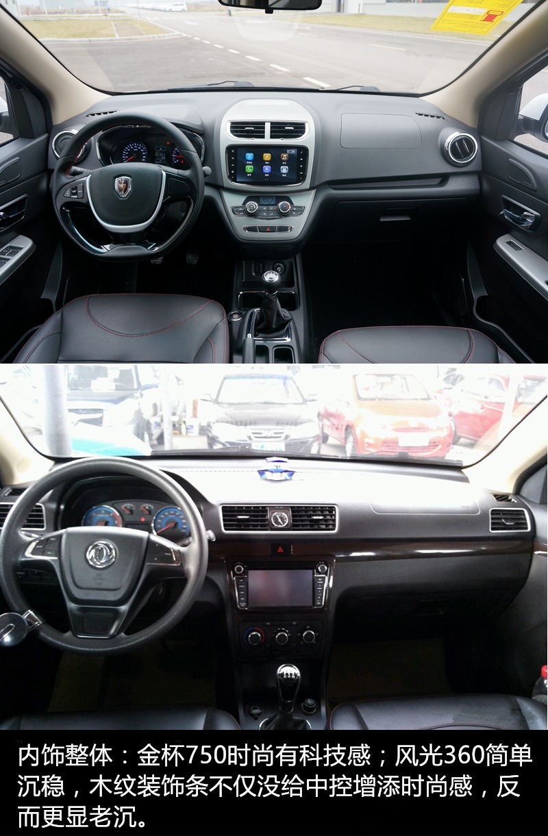 虽然两款都不是讲求花哨的车,但相比较而言,风光360的外观无论是从做工还是新鲜感上都没有金杯750那么足,看上去更显中庸。两款车的中控大屏都集成了蓝牙电话、倒车影像、GPS导航等功能。