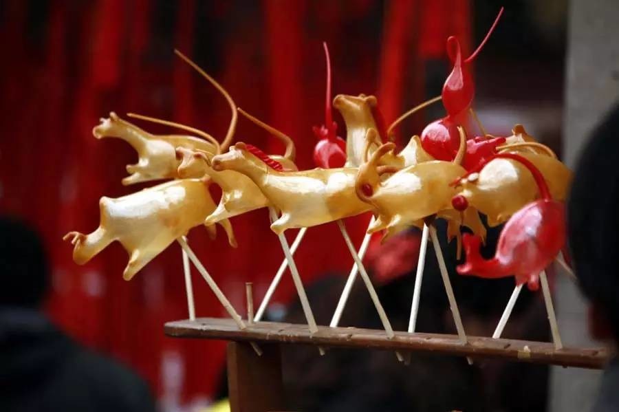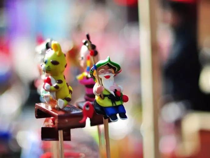 传统工艺:吹糖人、绒鸟、年画、面人、脸谱、绒布玩具等
