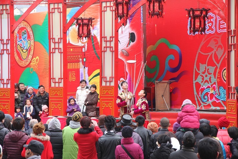 举刀拉弓表演是北京老天桥的绝活,具有浓厚古老皇城文化、京味文化底蕴,更是独领风骚百余年,象征民族精神凝聚力的杂技表演艺术,是我国宝贵的非物质文化遗产。它具有古朴、阳刚之美的艺术造型,表演动作威猛、难度大、极富有艺术性和欣赏性,一招一式无不展现出中国人民气吞山河的民族英雄气概。本次活动中,北京民俗博物馆邀请到获得中国民间文艺"山花奖"的北京天桥绝技传承人周全盛,为当地百姓奉上精彩的刀弓绝技表演。