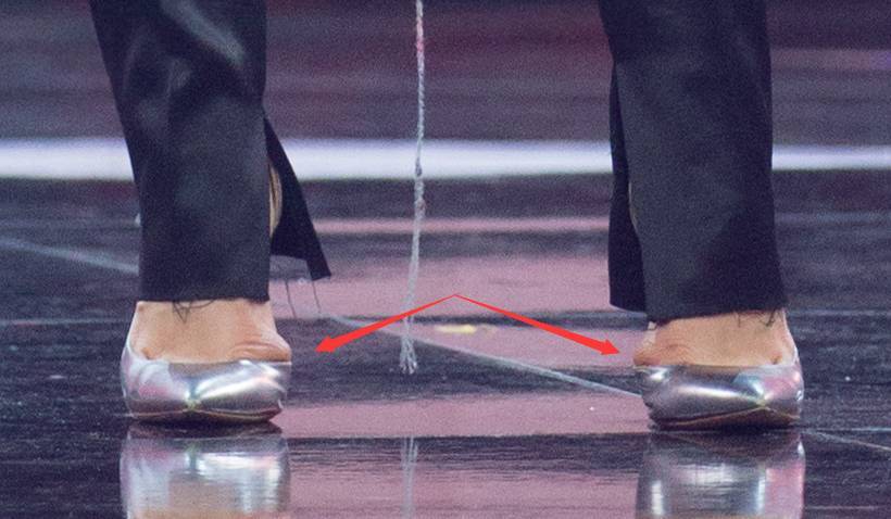 从脚步特写能看出来宋茜大脚拐太醒目了