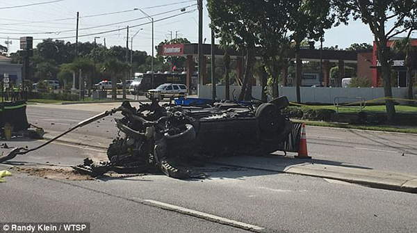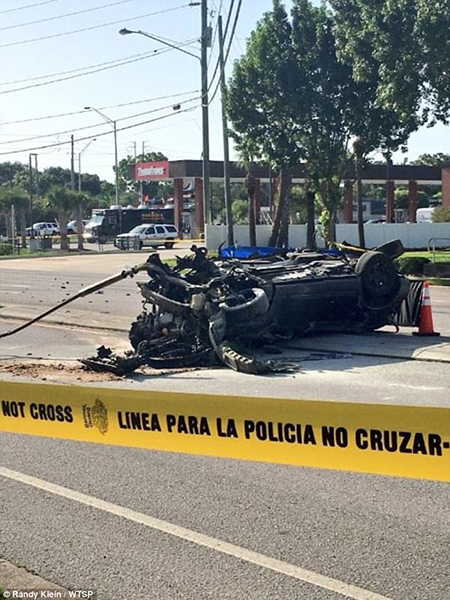 此后不久,载有四名未成年人的福特探险者在一处十字路口遇到红灯,但是这辆以超过160km/h速度行驶的汽车并未减速或停下,而是直接冲向对面路口。行驶到马路中间时,直接撞上另一辆车,车身随即失控离地飞起,在撞到路边广告牌后落地翻滚,并迅速起火,最终酿成惨剧。被撞车辆的司机、29岁的里奇·梅伦德斯在车祸中受到轻伤。