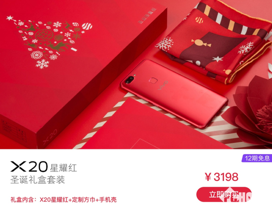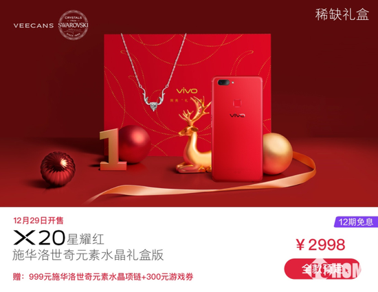 此次vivo X20星耀红版本还有三种礼盒可以选择,分别为施华洛世奇水晶礼盒版、明星礼盒版以及圣诞礼盒套装版。