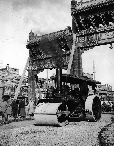 直到1900年以后,清政府才开始有了市政建设的概念。官府开始为部分路面铺设碎石,但大多数道路仍然裸露在外。民国初年,北京大街上开始出现汽车,飞驰的汽车加剧了扬尘。当时一名记者讽刺道:"街上若不过汽车,也显不出尘沙的威力,地上若没有沙尘,也显不出汽车威风,二者可算'相得益彰'了。"直到1949年,北京城区只有前门大街、东交民巷、西交民巷等十几条低级沥青路,其他街道,尤其是胡同里仍是尘土飞扬。