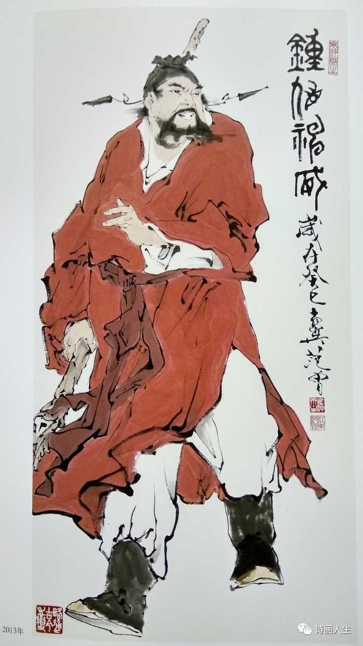 我看范曾的人物画,学术性,艺术性,思想性,观赏性,收藏性五性具备。读范曾的人物作品,不仅感触作品中梁楷的神髓,还能触摸到其用线和用墨的超脱。他笔下的钟馗,威然而霸气,李白仙风道骨,杜普忧国忧民,就连画中无名无姓的童子依稀跃动着智慧和灵气。
