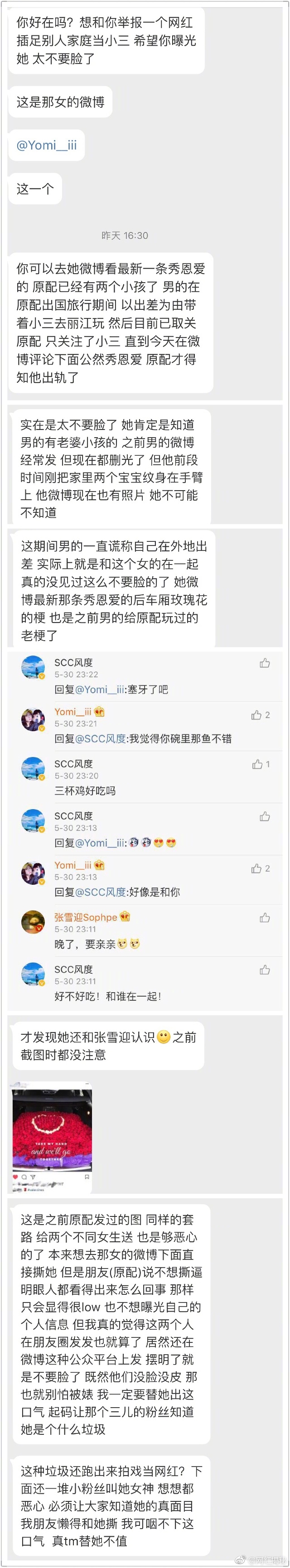 网曝网红金尤美插足别人家庭当小三,男方原配已经有两个小孩了,男的在原配出国旅行期间以出差为由带着她去丽江玩,两人还公然在微博上秀恩爱。SCC为超跑俱乐部会员,此人微博认证锦州铁有限公司董事长。
