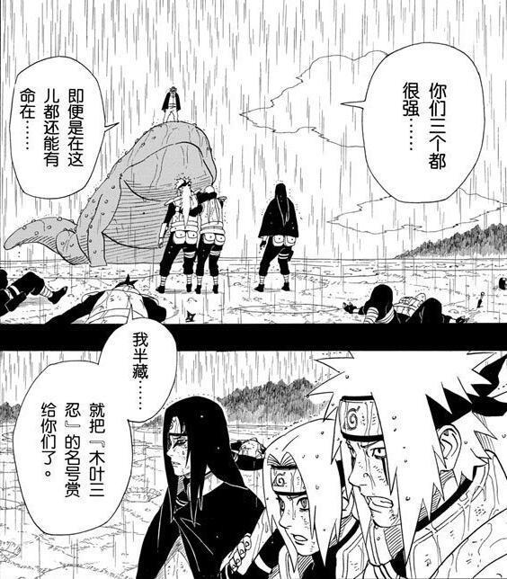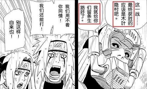 所以,在火影漫画中,山椒鱼半藏才会说最终胜利的“应该是”木叶村。当然,山椒鱼半藏本也可以干掉三忍,那么木叶就未必能得到胜利了。不过,这却不符合山椒鱼半藏的利益。