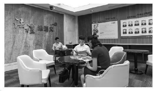步入家事功能区,布置得现代感十足。楼道里,是"家和"文化墙,上有各种谚语佳句与科普知识;近400平方米家事审判区,分时光大厅、调解室、心理疏导室、家事法庭四大功能区;时光大厅里安置同心树、三口之家雕塑、米色沙发,简洁而温馨;家事法庭更像家中客厅,暖色调的沙发椅座,悬挂中国结,丈夫、妻子的铭牌替代原告、被告。这样的设计也延伸到基层法庭,水头法庭就是其中代表。