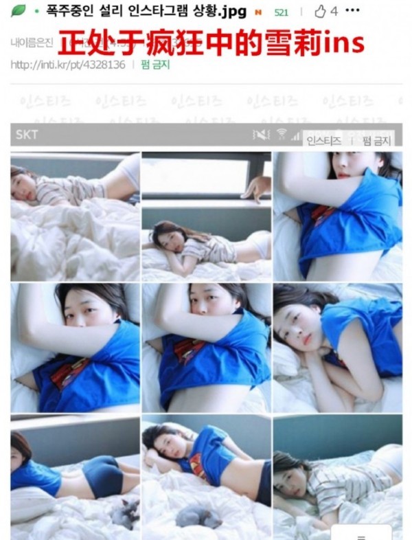 于是这些照片立马上了instiz网站的热帖,题目是“处于疯狂中的雪莉ins”。。。。